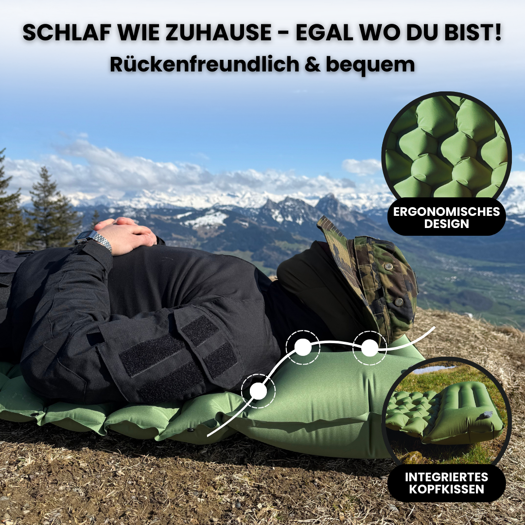 Unsere grüne Hikonic Outdoor Matte ist inspiriert von den ruhigen, tiefgrünen Wäldern der Schweiz. Sie erinnert an die sanften Hügel des Emmentals, wo die Natur in ihrer vollen Pracht erblüht und der Duft von frischem Moos die Luft erfüllt. Tauche ein in diese beruhigende Atmosphäre und genieße die Gelassenheit der Natur – bei jedem Outdoor-Abenteuer, das dir den nötigen Ausgleich bietet.