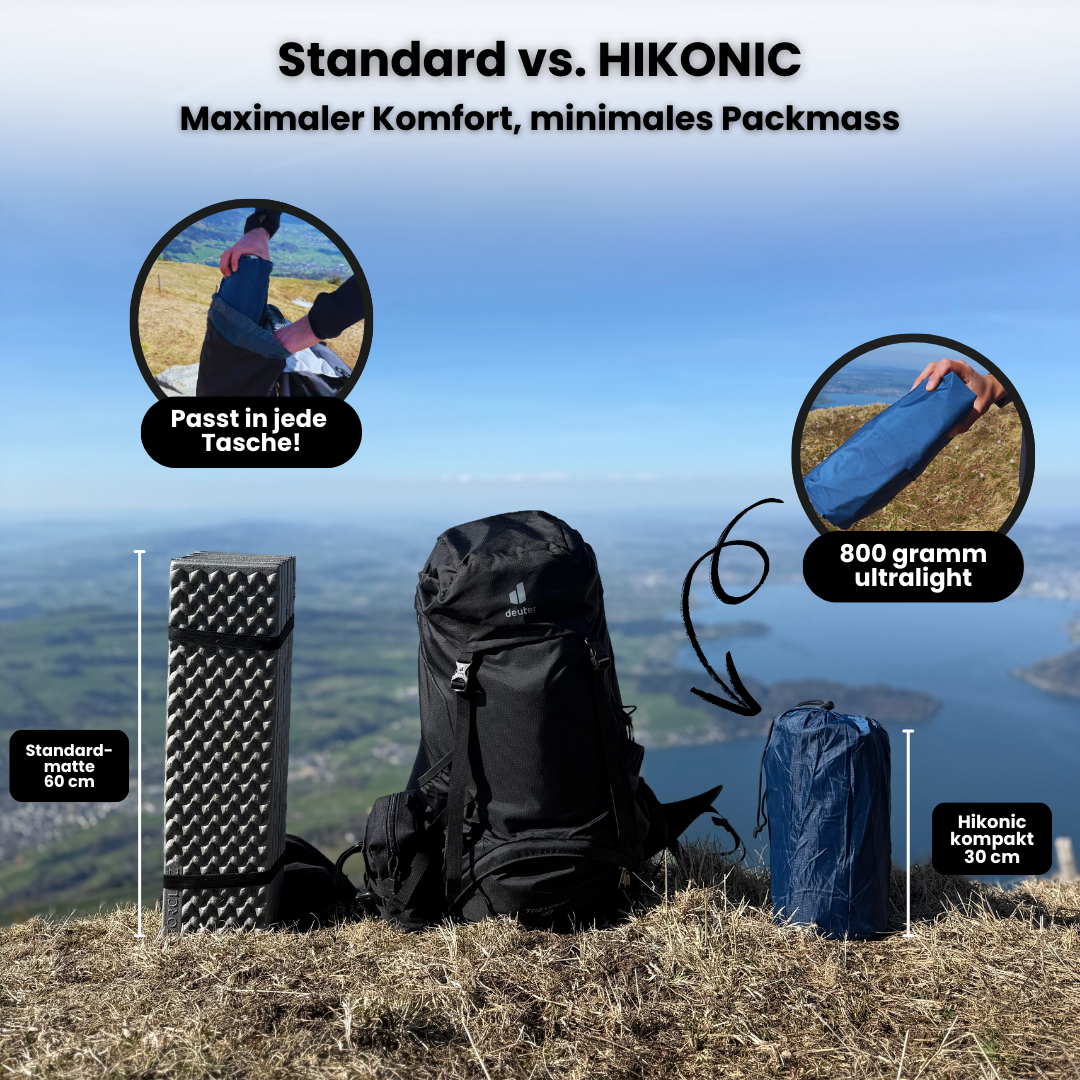 Unsere blaue Hikonic Outdoor Matte ist inspiriert von den beruhigenden, klaren Wassern der Schweizer Alpen, wie dem Seealpsee, der an sonnigen Tagen in tiefem Blau erstrahlt. Sie fängt das Gefühl von Freiheit und Weite ein, das die Natur in ihrer reinsten Form bietet. Spüre die Freiheit und Gelassenheit bei jedem Outdoor-Abenteuer – stilvoll und komfortabel, wie ein ruhiger Moment am Ufer eines kristallklaren Sees.